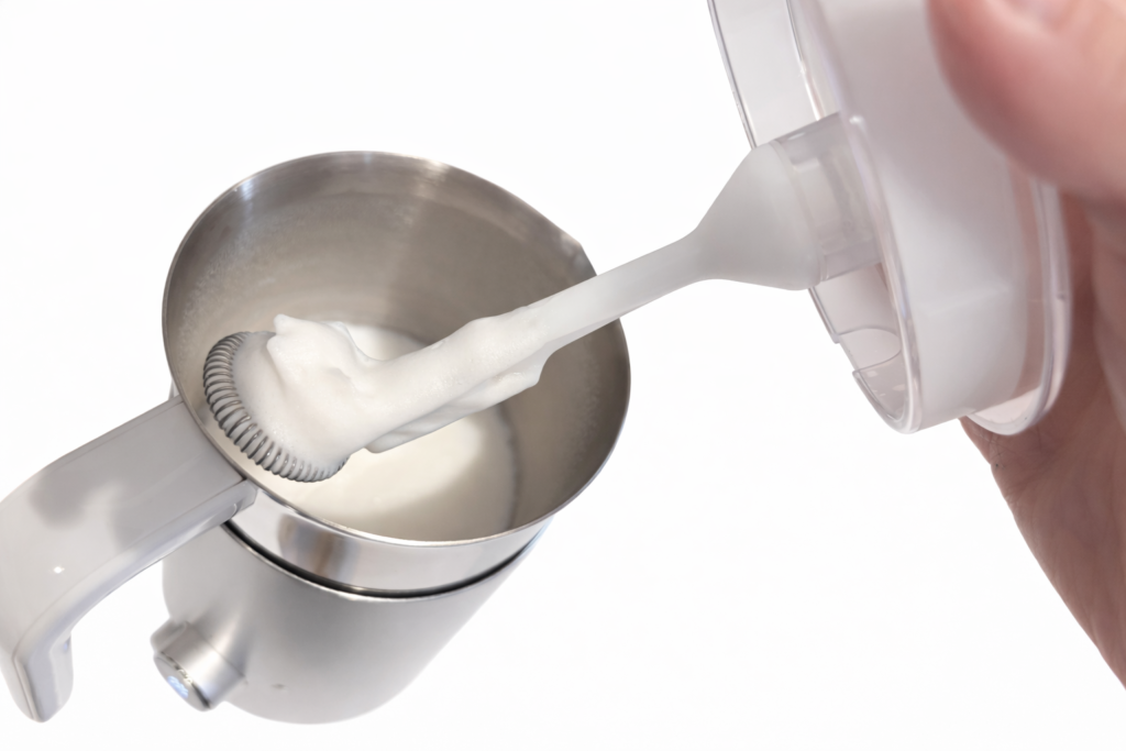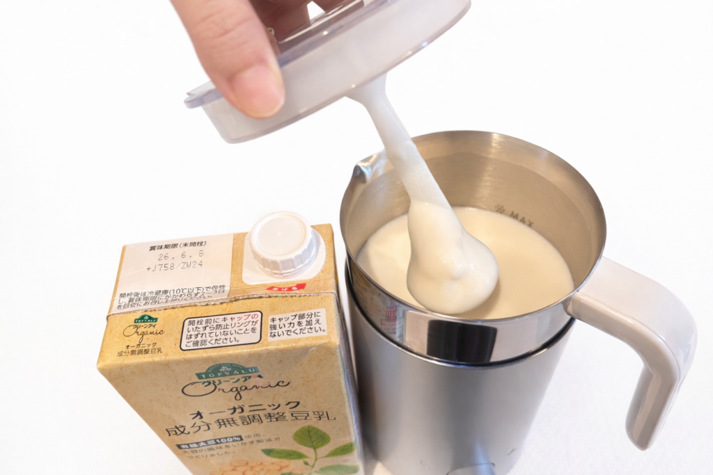 - 豆乳やアーモンドミルクは、メーカーや成分によって泡立ちに差が出ます。成分無調整がおすすめ。
